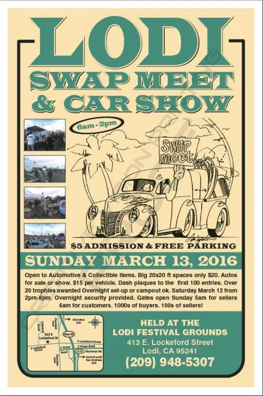 Open to automotive & collectible items. Big 20x20 ft spaces only $20. Autos for sale or show. $15 per vehicle.