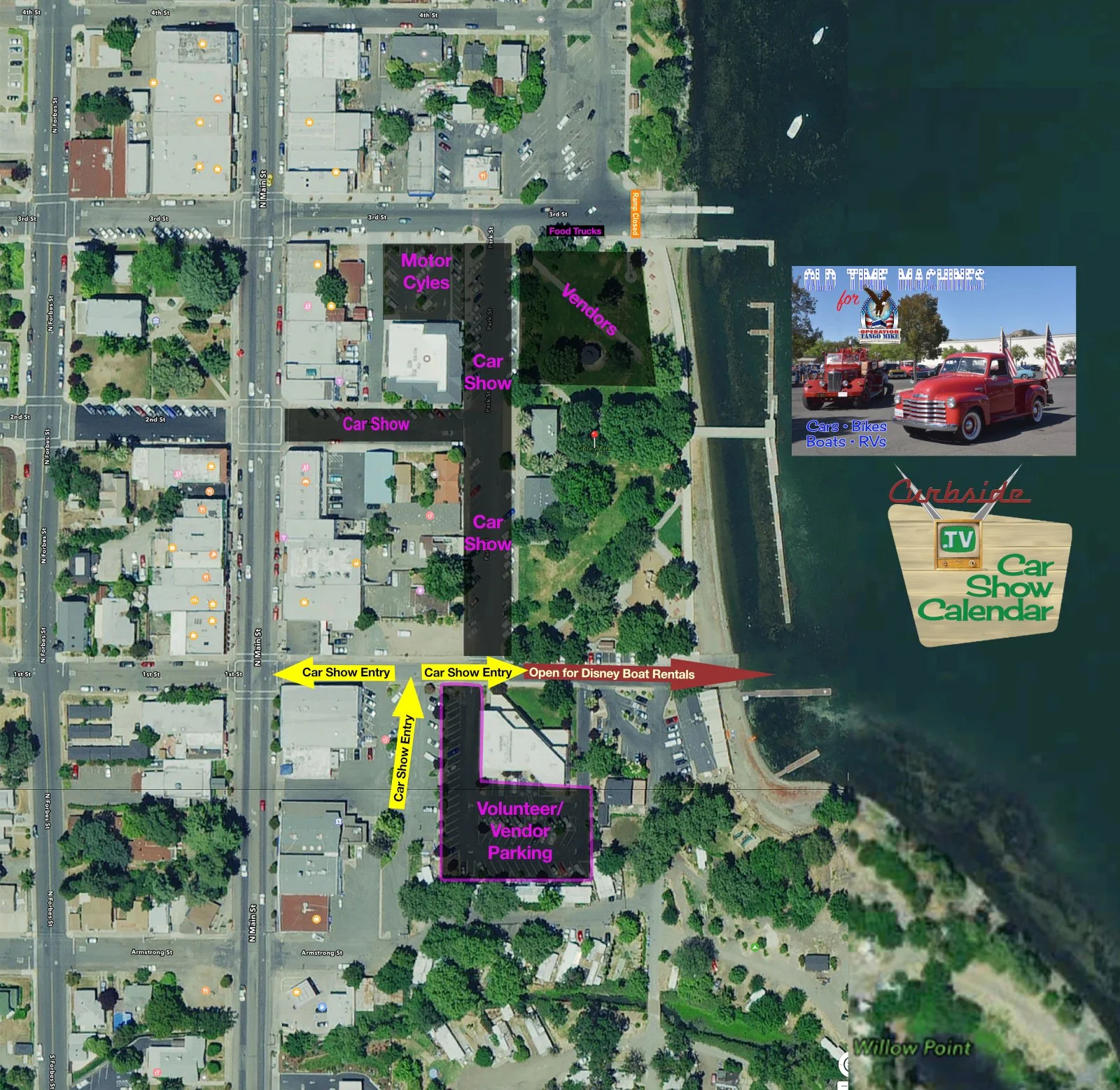 No worries if you haven’t registered yet. We are happy to have you, space permitting. The show is on the corner of Park and Third and we will get you all registered. We are asking for a $30 donation to Operation Tango Mike to register and appreciate your being part of our show.